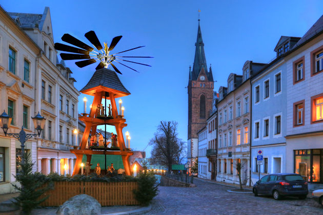 Alljährlich am zweiten Adventswochenende öffnet der Weihnachtsmarkt in Leisnig, auch als Leisniger Märchen- und Familienweihnacht bekannt, seine Pforten. Er präsentiert sich in der historischen Altstadt um die sieben Meter hohe, wunderschöne Pyramide und auf dem Kirchplatz um die Stadtkirche St. Matthäi herum. In 20 schön dekorierten Verkaufsständen bieten Leisniger und auswärtige Händler weihnachtliche Waren an. Konzerte der Musikschule, des Leisniger Frauenchores und das Adventssingen gehören genau so zum Programm wie der tägliche Besuch des Weihnachtsmannes. (© FuM)