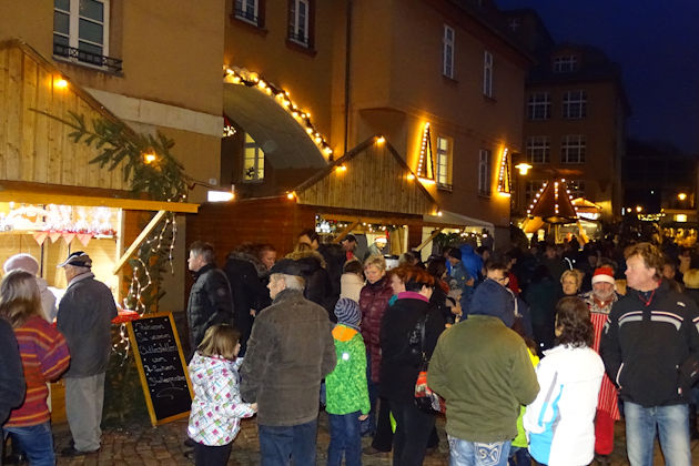 Zum Weihnachtsmarkt in Lichtenstein/Sachsen, einer Kleinstadt im Landkreis Zwickau, erwartet die Besucher ein kleines Budendorf mit zahlreichen Händlern. Angeboten werden an den geschmückten Ständen weihnachtliche Waren sowie Geschenkartikel. Für das leibliche Wohl der Weihnachtsmarktgäste ist mit kulinarischen Köstlichkeiten wie Glühwein, Grillwurst, Lebkuchen und vielem mehr gesorgt. Ein umfangreiches musikalisches Rahmenprogramm sorgt für eine weihnachtliche Atmosphäre beim Bummel über den Weihnachtsmarkt. (© FuM)