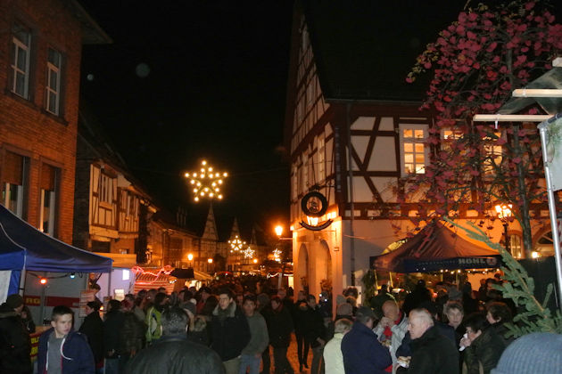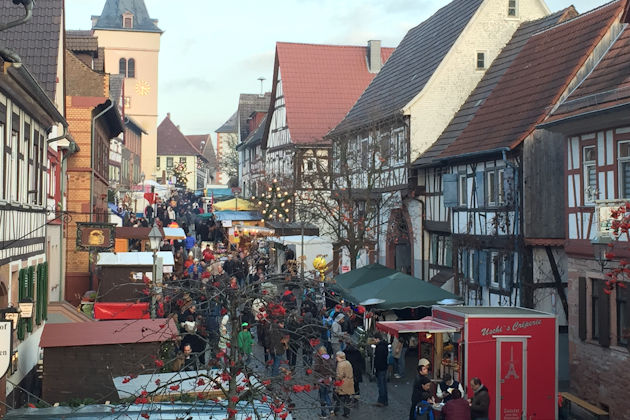 In historischer Fachwerkidylle erleben die Besucher den Weihnachtsmarkt in Maintal-Hochstadt. Budenzauber und nostalgische Höfe vom Obertor über die Hauptstraße bis zur Klosterhofstraße machen den Weihnachtsmarkt zu einem besonderen Erlebnis. Die Kinder freuen sich auf die lebende Krippe im romantischen Bauernhof mit Lagerfeuer. Kunsthandwerkliche Marktstände im Rathaus komplettieren den Weihnachtsmarkt. An beiden Tagen kommt die Nikolauskutsche mit einer Bescherung für die Kinder. Der Hochstädter Weihnachtsmarkt findet immer am 2. Adventswochenende statt. (© FuM)
