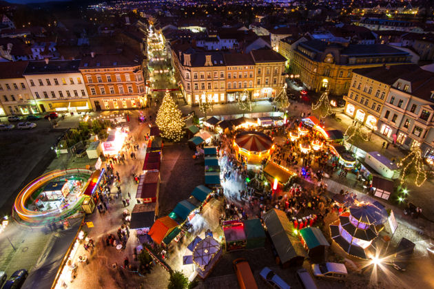 Der Weihnachtsmarkt in der Theaterstadt Meiningen findet in der festlich geschmückten Innenstadt statt. Rund um die 1.000-jährige Stadtkirche werden die zahlreichen Buden der Markthändler und Gastronomen aufgestellt. Der Duft nach Glühwein, Bratwurst und gebrannten Mandeln zieht Besucher magisch an. Zum Angebot gehören aber auch Kunstgewerbliches und Geschenkartikel. Besonders hervorzuheben ist das umfangreiche Rahmenprogramm rund um den Meininger Weihnachtsmarkt. Dazu gehört das musikalische Bühnenprogramm auf dem Marktplatz. (© FuM)