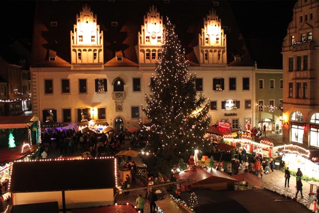 Der Weihnachtsmarkt in Meißen ist unter dem Namen "Meißner Weihnacht" im gesamten Bundesgebiet bekannt geworden. Liebhaber von Weihnachtsmärkten mit besonderem Flair kommen hier voll auf ihre Kosten. An den über 30 festlich geschmückten Weihnachtsmarkthütten werden neben Geschenk- und Dekorationsartikeln auch zahlreiche Schlemmereien angeboten. An erster Stelle ist hier der Baumstriezel zu nennen, der weit über die Grenzen Meißens hinaus seine Liebhaber gefunden hat. Ein umfangreiches Veranstaltungsangebot der Meißner Kultureinrichtungen und Kirchen gibt dem Weihnachtsmarkt einen feierlichen Rahmen. Die Kinder können sich an allen Adventswochenenden Samstag und Sonntag gegen 17 Uhr sowie an Heiligabend gegen 11 Uhr auf den Weihnachtsmann freuen. Parallel zum Weihnachtsmarkt wird sich auch in diesem Jahr das Meißner Rathaus in einen riesigen Adventskalender verwandeln. Vom 1. bis zum 24. Dezember wird täglich ein Fenster geöffnet werden. Ab dem 1. Weihnachtsfeiertag bis Neujahr schließt sich nahtlos der Meißner Wintermarkt an. (© FuM)