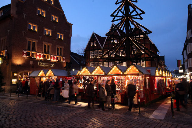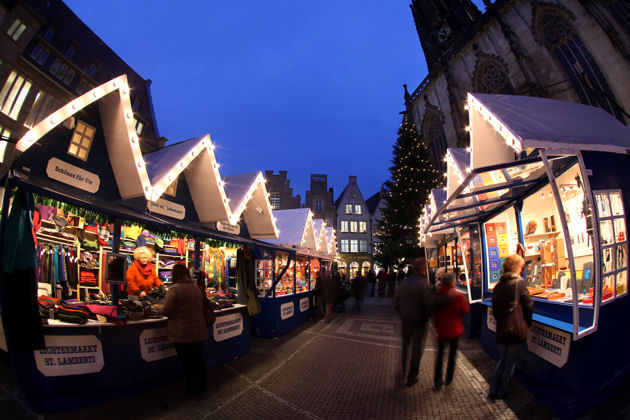 In Münster gibt es in diesem Jahr gleich sechs verschiedene Weihnachtsmärkte im Ambiente der Altstadt. Alle liegen nur wenige Minuten Fußweg voneinander entfernt. Insgesamt um die 300 Weihnachtsmarkt-Stände laden zum Bummeln, Schauen, Staunen und Genießen ein. Auch der Prinzipalmarkt erstrahlt in der Zeit der Weihnachtsmärkte im Lichterglanz. Ein umfangreiches Veranstaltungsprogramm während der Adventszeit rundet diese Weihnachtsmärkte noch ab.