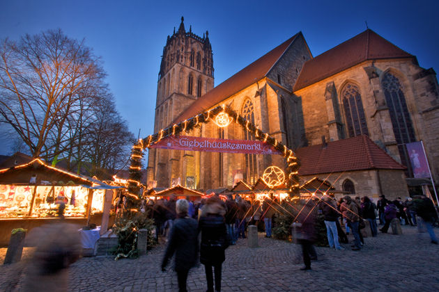 Der Giebelhüüskesmarkt vor der Überwasserkirche ist der jüngste Weihnachtsmarkt der Stadt Münster. Im romantischen Ambiente können die Besucher beim Duft von Waffeln und Glühwein verweilen. Auch der Giebelhüüskesmarkt schließt bereits am 22. Dezember.