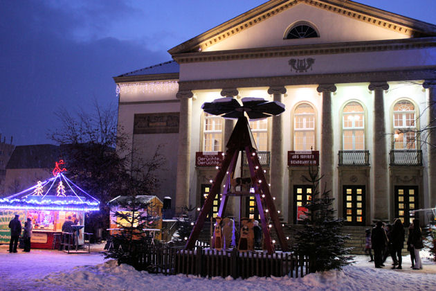 Zum traditionellen Weihnachtsmarkt in Nordhausen, früher auch unter dem Namen Adventsmarkt bekannt, reihen die Händler rund um den Roland auf dem Rathausplatz ihre Buden auf. Auf dem Theaterplatz finden die Besucher die Stände der Vereine und eine Eisstockbahn. Ein fester Bestandteil des Weihnachtsmarktes in Nordhausen ist auch der Adventskalender am Theater. Ein Handwerkermarkt auf dem Blasiikirchplatz rundet an den Wochenenden das Angebot ab. Ein besonderer Höhepunkt ist die Eröffnung mit dem Anschnitt des Riesenstollens. Die Kinder dürfen sich auf ein Karussell, den Märchenwald sowie an den Wochenenden auf den Besuch vom Weihnachtsmann freuen. (© FuM)