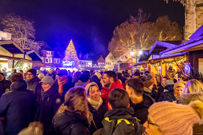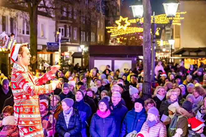 Der vereinsgetragene Markt Weihnachtsmarkt in Oelde, liebevoll als "Oelder Winterleuchten" bekannt, verwandelt den Marktplatz in der Innenstadt in eine festliche Oase der Gemütlichkeit. Die charmanten Hütten bieten eine Fülle von kulinarischen Köstlichkeiten, die die Weihnachtszeit so besonders machen. Hier kann man sich mit duftendem Glühwein, Bratwürsten und süßen Leckereien verwöhnen lassen. Doch der Weihnachtsmarkt in Oelde bietet mehr als nur Gaumenfreuden. Am Donnerstag, Freitag und Samstag um 19 Uhr gibt es jeweils einen musikalischen Höhepunkt. Am Sonntag findet um 16:30 Uhr wieder das beliebte Mitsongkonzert der Oelder Chöre statt. Am zweiten Advent beteiligen sich die Einzelhändler mit einem verkaufsoffenen Sonntag. Die Fußgängerzone wird parallel dazu mit allerlei Walk-Acts und Aktionen begeistern. (© FuM)