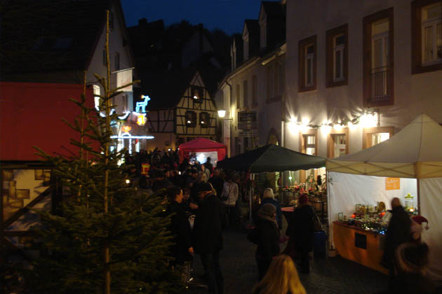 Der Weihnachtsmarkt in Ottweiler findet wieder in der Altstadt statt. Zwischen den Fachwerk- und Renaissancegiebeln in den romantischen Gassen verbreitet sich eine ganz besondere weihnachtliche Atmosphäre. An den liebevoll geschmückten Ständen rund um die Ringbebauung bieten Markthändler, Gastronomen und Vereine handwerkliche Produkte sowie kulinarische Spezialitäten an. Zum Rahmenprogramm beim Weihnachtsmarkt in Ottweiler gehören musikalische Acts. Die örtlichen Einzelhändler beteiligen sich am ersten Advent mit einem verkaufsoffenen Sonntag. Der Termin für den Weihnachtsmarkt in Ottweiler fällt in der Regel auf das erste Adventswochenende. (© FuM)