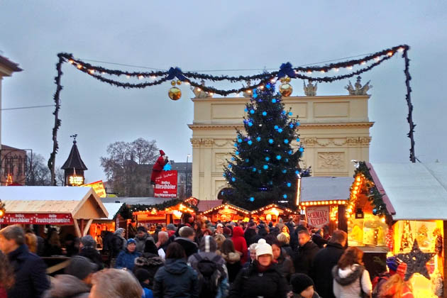 Pünktlich zur Weihnachtsmarkt-Saison verwandelt sich die historische Kulisse Potsdams in ein funkelndes Wunderland für den diesjährigen Weihnachtszauber. Mit rund 250 Ständen lädt dieser Markt zu einem einmaligen Vorweihnachtserlebnis in der Innenstadt ein. Auf dem Luisenplatz empfängt die Besucher ein charmantes weißes Pagodendorf, das mit erlesenem Kunsthandwerk, feiner Feinkost und einer lebendigen Jazz-&-Swing-Bühne lockt. Weiter geht die Reise zum Brandenburger Tor, wo der vielleicht größte Weihnachtsbaum der Stadt stolz emporragt, flankiert von einem nostalgischen Kinderkarussell. Entlang der Brandenburger Straße gelangt man schließlich zum Bassinplatz, dem Zentrum der winterlichen Action mit Eisbahn, Riesenrad und der Hauptbühne. Der Potsdamer Weihnachtsmarkt startet in der Regel am Montag vor dem ersten Advent. (© FuM)