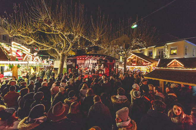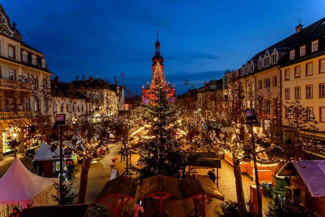 Der traditionelle Weihnachtsmarkt in Rastatt findet wieder auf dem Marktplatz statt. An den weihnachtlich geschmückten Hütten werden neben kreativen Geschenkartikeln vor allem winterliche Leckereien Flammlachs, Bratwurst und Crepes sowie heiße Getränke wie Glühwein, Punsch oder Tee angeboten. Zum Verweilen laden der Glühweingarten sowie mehrere "Pause-Stationen" zum Unterstellen ein. Fester Bestandteil des Weihnachtsmarktes in Rastatt ist das abendliche Bühnenprogramm. Freitag- und Samstagabend spielen bekannte Bands aus der Region. Die kleinen Besucher dürfen sich auf ein Kinderkarussell und die Kindereisenbahn, die Kinderaktionshütten vor dem Historischen Rathaus sowie samstags auf den Theatermittag auf der Bühne freuen. (© FuM)