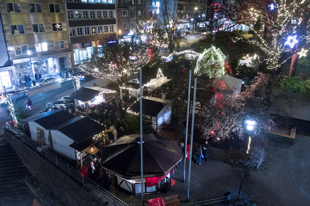 Der Weihnachtsmarkt in Siegen findet vor der malerischen Kulisse des Unteren Schlosses mitten in der Siegener Altstadt statt. An den weihnachtlich geschmückten Ständen werden individuelle Geschenkideen, Spielwaren, Kunsthandwerk und Schmuck angeboten. Daneben dürfen auch die typischen Weihnachtsmarkt-Leckereien und klassische Imbissangebote nicht fehlen. Für den guten Zweck steht das "Siegener Sozialhäuschen" zur Verfügung. Zum Rahmenprogramm beim Siegener Weihnachtsmarkt zählen Live-Darbietungen "unplugged" und Walking Acts. Eine besondere Attraktion dürfte das historische, denkmalgeschützte Riesenrad darstellen. Eine 300 qm große Echteisbahn ergänzt das Angebot zum Weihnachtsmarkt in Siegen. An den Wochenenden öffnet zusätzlich der Adventsmarkt im Krönchendorf. (© FuM)