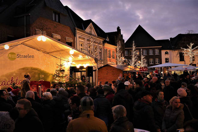 Der Weihnachtsmarkt in Straelen findet jedes Jahr am ersten Adventswochenende statt. Mit mehr als 30 Händlern bietet dieser Markt ein vielfältiges und hochwertiges Warensortiment. Die Stände sind gefüllt mit Geschenkartikeln, kunstvollen Krippen, Holzspielzeug, handbemaltem Porzellan, selbst gestaltetem Schmuck, Bildern und Töpferwaren - allesamt perfekte Geschenkideen für die bevorstehenden Feiertage. Doch nicht nur das Einkaufen steht im Mittelpunkt. Der verlockende Duft von Glühwein, frisch gebackenen Reibekuchen und würzigen Spekulatius erfüllt die Luft und lädt die Besucher dazu ein, eine kulinarische Auszeit zu genießen. Ein unterhaltsames Rahmenprogramm mit weihnachtlichen Aktivitäten und musikalischen Darbietungen sorgt für fröhliche Stimmung und rundet das Erlebnis des Weihnachtsmarktes in Straelen perfekt ab. (© FuM)