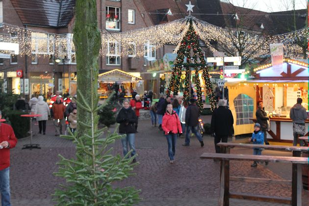 Der Weihnachtsmarkt in Versmold findet 2025 bereits zum 45. Mal statt. Kirchenvorplatz und Marktplatz verwandeln sich dazu in ein kleines Weihnachtsdorf. Ein besonderer Blickfang ist dabei der 7,5 Meter hohe "stählerne Weihnachtbaum" mit seiner Lichtinstallation. An den liebevoll gestalteten Holzhütten werden weihnachtliche Artikel ebenso wie zahlreiche kulinarische Spezialitäten angeboten. An allen drei Tagen wird den Besuchern ein Bühnenprogramm mit musikalischen Darbietungen geboten. Die Kinder dürfen sich am Samstag auf die Kinderweihnachtsbäckerei und am Sonntag auf den Besuch des Nikolaus freuen. Am Sonntagnachmittag dreht der Versmolder Weihnachts-Express wieder seine Runden durch Versmold. Die Einzelhändler beteiligen sich am Weihnachtsmarkt in Versmold mit einem verkaufsoffenen Sonntag von 13 bis 18 Uhr. Der Versmolder Weihnachtsmarkt findet in der Regel am dritten Adventswochenende statt und wird von der Aktionsgemeinschaft Versmold organisiert. (© FuM)
