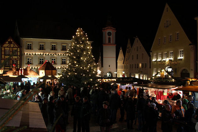 Zum Weihnachtsmarkt "Weißenburger Weihnacht" im bayerischen Weißenburg werden auf dem Marktplatz zahlreiche weihnachtlich geschmückte Buden aufgebaut. Kunsthandwerker aus der Region bieten ihre Waren zum Verkauf an. Natürlich darf auch ein Kinderkarussell nicht fehlen. Täglich wird auf dem Weihnachtsmarkt ein abwechslungsreiches Programm mit Künstlern und Musikern geboten. Für das leibliche Wohl der Besucher ist mit Glühwein und kulinarischen Spezialitäten gesorgt. (© FuM)