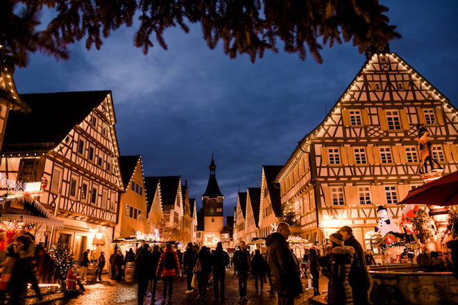 Zum Weihnachtsmarkt in Winnenden ist die historische Innenstadt stimmungsvoll geschmückt und erstrahlt im weihnachtlichen Lichterglanz. An zahlreichen Ständen werden weihnachtliche Waren und Geschenkartikel angeboten. Für kulinarische Genussmomente sorgen u.a. Pizza nach italienischer Art sowie Glühwein und Punsch vom Weingut Siegloch. Das kulturelle Rahmenprogramm des Winnender Weihnachtsmarktes kann sich sehen lassen. (© FuM)