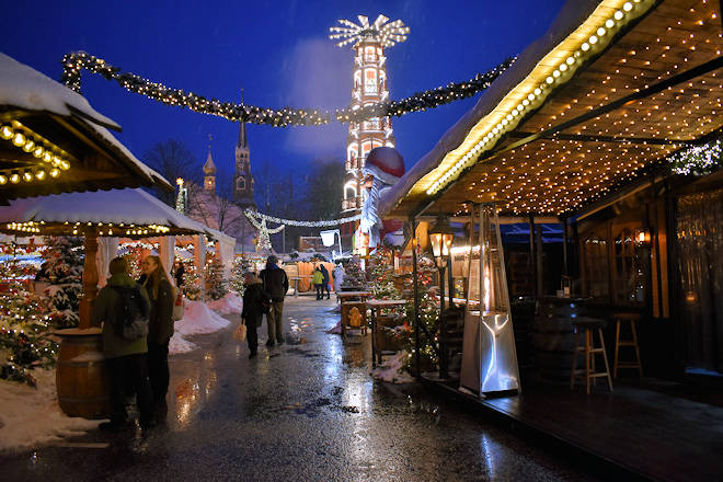 Im Dittmarschen öffnet in diesem Jahr wieder der Weihnachtsmarkt "Heider Winterwelt". Auf dem Marktplatz von Heide bauen zahlreiche Händler ihre liebevoll geschmückten Buden auf. Die Besucher finden hier Geschenkartikel, Kunstgewerbe, Schmuck, Lederwaren und vieles mehr. Natürlich dürfen auch Gastronomiestände nicht fehlen. Eine Besonderheit ist der Ausschank von heißen Getränken in blau weißen Getränkebechern aus Keramik, welche mit dem Heider Wasserturm und der St. Jürgenkirche verziert sind. Ein abwechslungsreiches Rahmenprogramm und der Besuch vom Weihnachtsmann sind feste Bestandteile beim Weihnachtsmarkt "Heider Winterwelt". Eislaufspaß ist in diesem Jahr wieder garantiert. Dafür steht eine 600 qm große hochmoderne Kunststoff-Bahn zur Verfügung. Diese bildet auch den Austragungsort für den Heide Eisstock-Cup. (© FuM)
